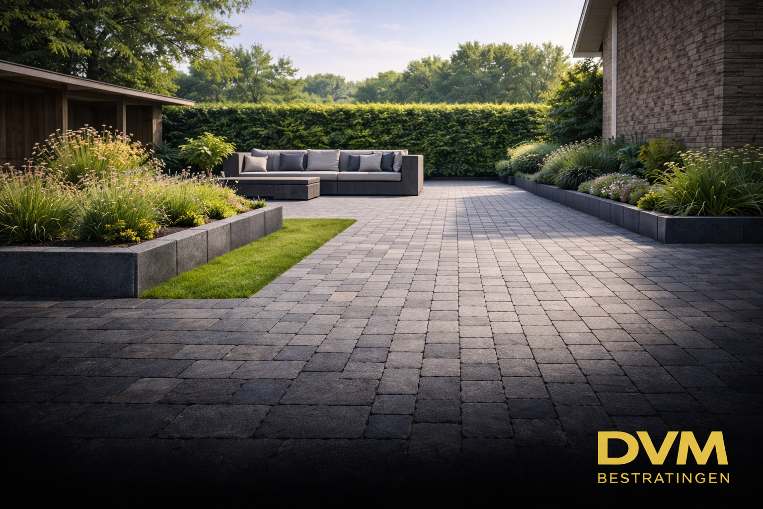 Strak aangelegd straatwerk voor opritten, paden en parkeerplaatsen met sierbestrating of functionele oplossingen.